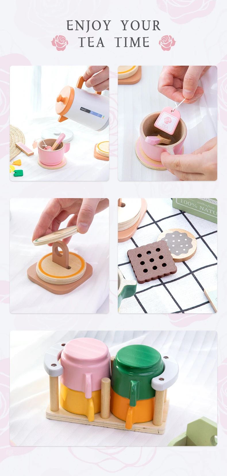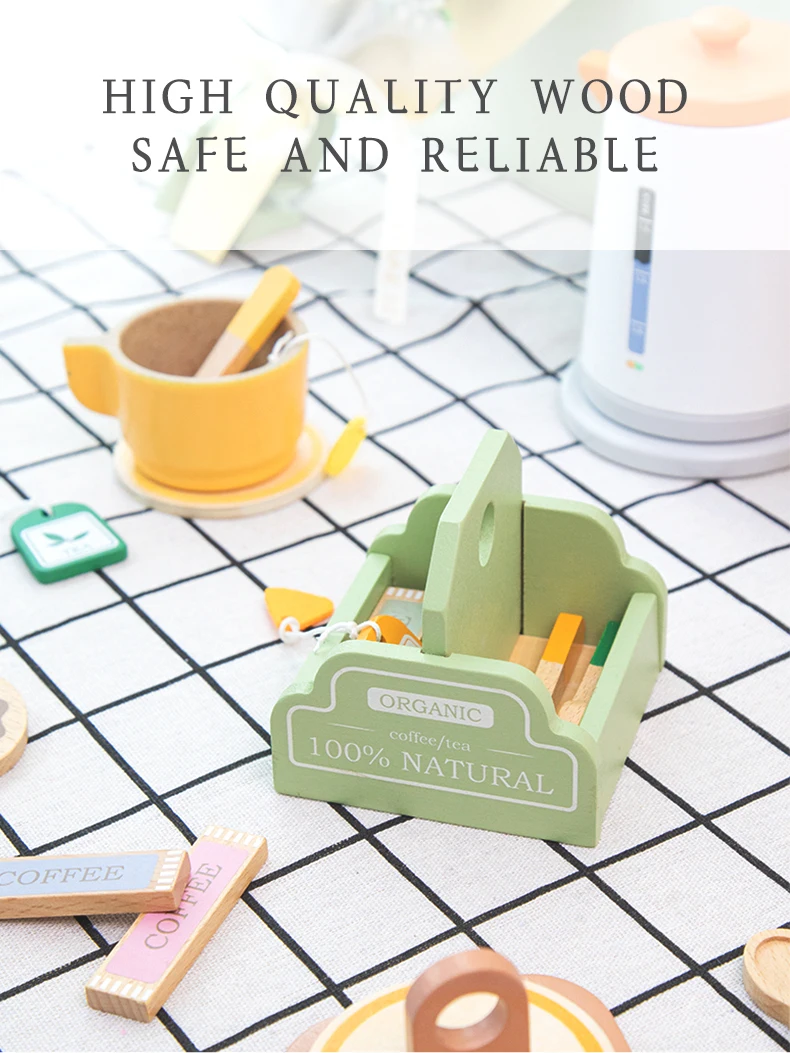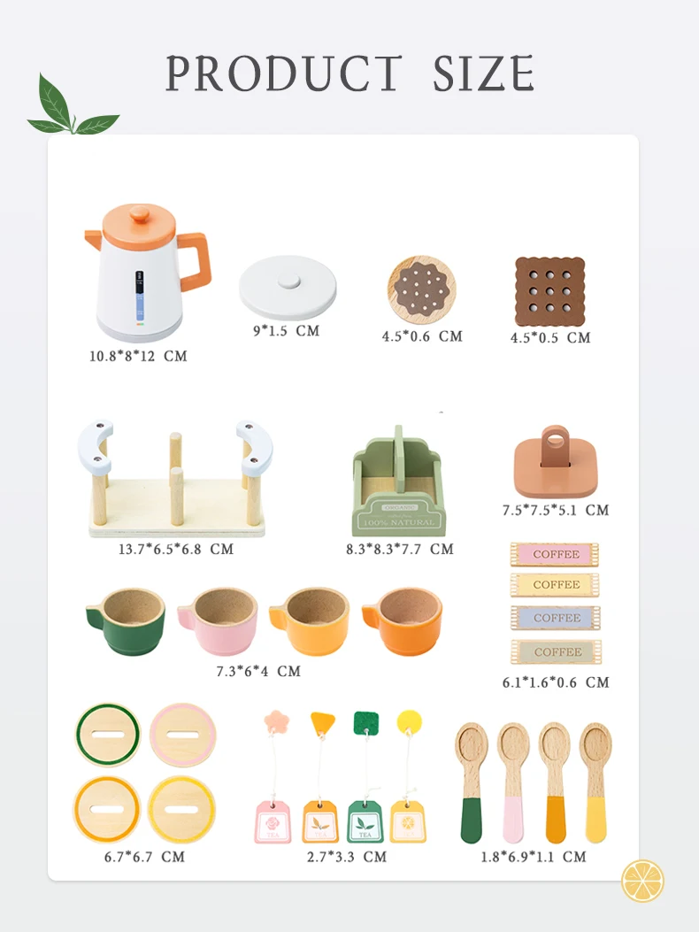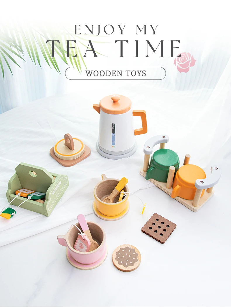 Product Includes: A set of wooden tea set toys