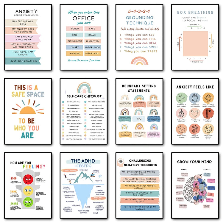 Mental Health Anxiety Relief Psychology Wall Art Canvas Painting Posters Prints Wall Picture for Clinic Therapy Office Decor