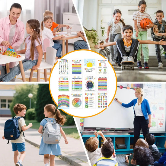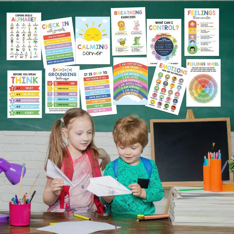 12pcs Mental Health Psychology Coping Skills Poster Kids Calming Corner Posters Classroom Emotions Painting Wall Art Picture
