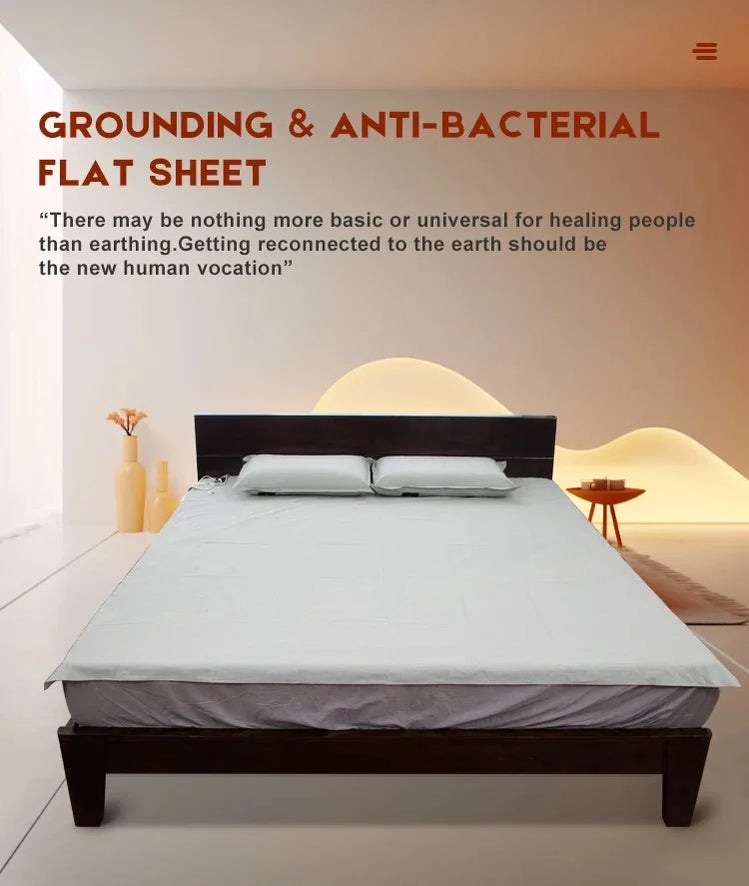 Grounding Flatted Bed Sheets with 10% Silver Fiber & Organic Cotton- Conductive with Grounding Cord, Grounding Keep Good Sleep